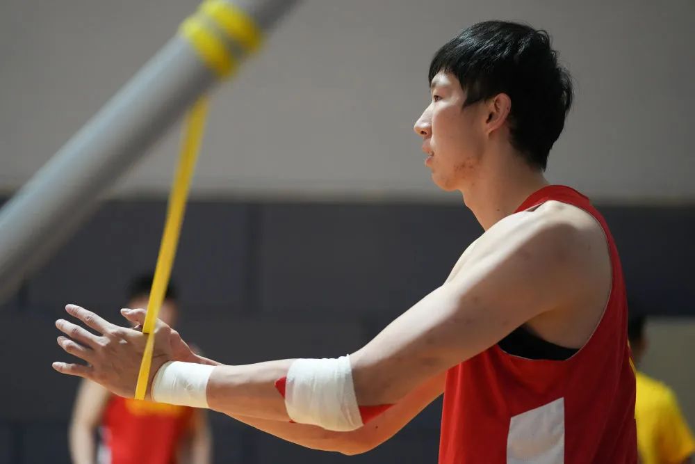 2月11日,中国男篮集训队队员周琦在训练课上。新华社发